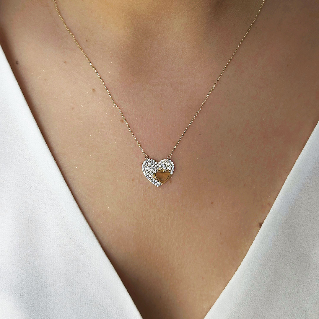 Gargantilla corazón con zirconias y liso 44 cms
